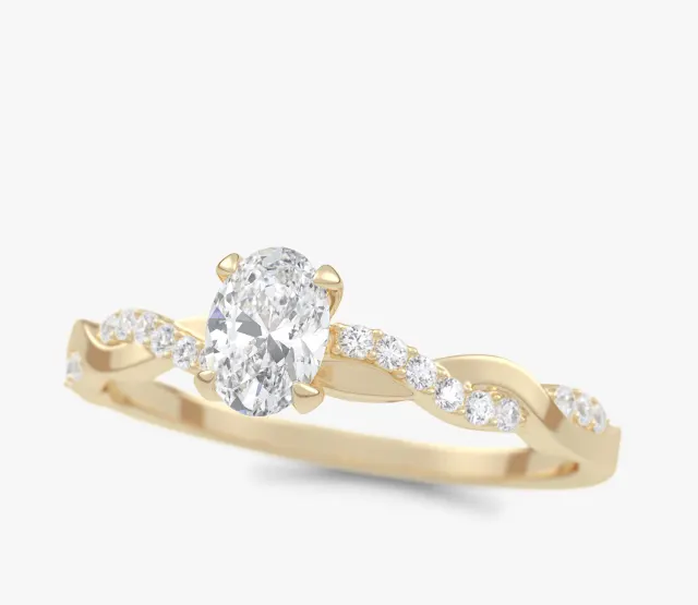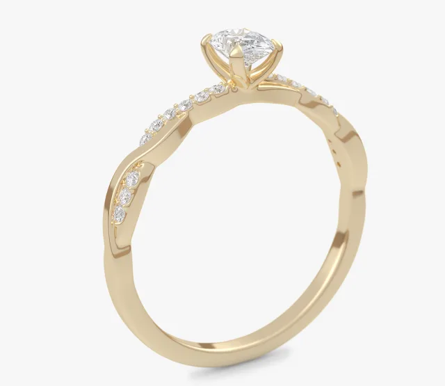 Pierścionek zaręczynowy Wila to kwintesencja subtelnej elegancji i naturalnej harmonii. Zachwyca niepowtarzalnym splotem obrączki, który symbolizuje splatanie się dwóch dróg w jedną wspólną historię. Centralny owalny diament lśni pełnią blasku, podkreślając wyjątkowość chwili, a towarzyszące mu drobne kamienie osadzone w oplatającej obrączce dodają całości lekkości i romantycznego charakteru.