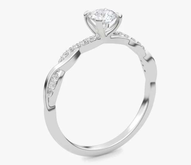 Pierścionek zaręczynowy Willow to kwintesencja subtelnej elegancji i naturalnej harmonii. Zachwyca niepowtarzalnym splotem obrączki, który symbolizuje splatanie się dwóch dróg w jedną wspólną historię. Centralny kamień lśni pełnią blasku, podkreślając wyjątkowość chwili, a towarzyszące mu drobne kamienie osadzone w oplatającej obrączce dodają całości lekkości i romantycznego charakteru.