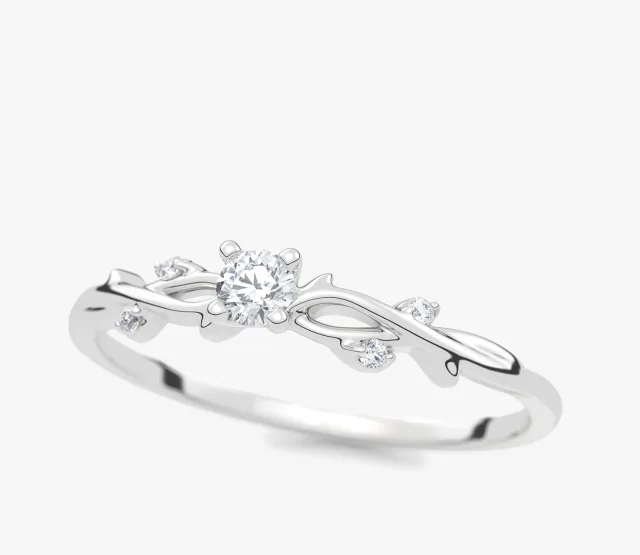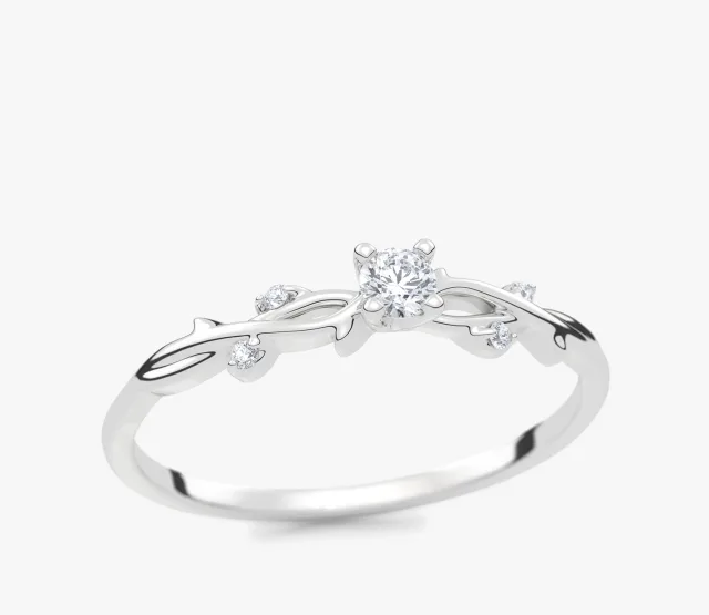 Pierścionek zaręczynowy z białego złota z brylantem Secret Garden 0,07 ct