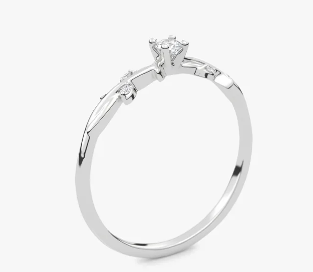 Pierścionek zaręczynowy Rosie to wyjątkowy symbol miłości, inspirowany subtelnym pięknem róży. Jego niezwykły design łączy klasyczną elegancję z florystycznym motywem, tworząc biżuterię, która zachwyca detalami i finezyjnym wykonaniem. Lśniący kamień centralny, osadzony w sercu pierścionka, symbolizuje wieczną miłość i czystość uczuć, a jego szlif podkreśla niezwykły blask i wyjątkowość każdej chwili. Pierścionek Rosie to idealny wybór dla osób ceniących subtelność, ponadczasową elegancję i symbolikę prawdziwej miłości.
