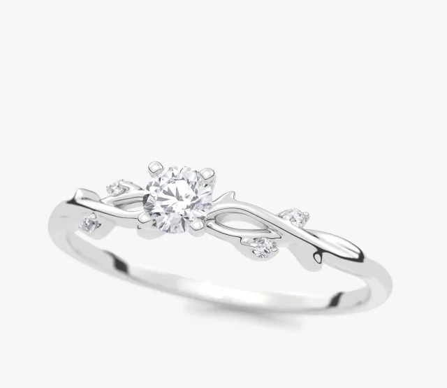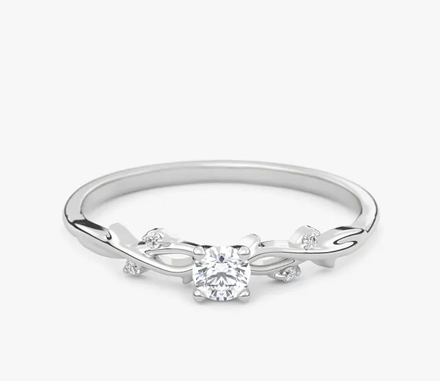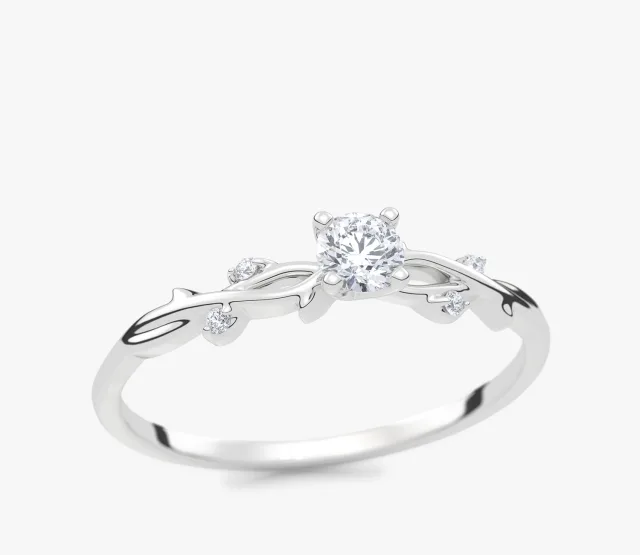 Pierścionek zaręczynowy Rosie to wyjątkowy symbol miłości, inspirowany subtelnym pięknem róży. Jego niezwykły design łączy klasyczną elegancję z florystycznym motywem, tworząc biżuterię, która zachwyca detalami i finezyjnym wykonaniem. Lśniący kamień centralny, osadzony w sercu pierścionka, symbolizuje wieczną miłość i czystość uczuć, a jego szlif podkreśla niezwykły blask i wyjątkowość każdej chwili. Pierścionek Rosie to idealny wybór dla osób ceniących subtelność, ponadczasową elegancję i symbolikę prawdziwej miłości.