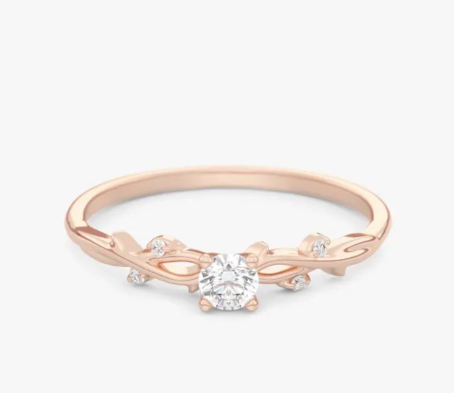 Pierścionek zaręczynowy Rosie to wyjątkowy symbol miłości, inspirowany subtelnym pięknem róży. Jego niezwykły design łączy klasyczną elegancję z florystycznym motywem, tworząc biżuterię, która zachwyca detalami i finezyjnym wykonaniem. Lśniący kamień centralny, osadzony w sercu pierścionka, symbolizuje wieczną miłość i czystość uczuć, a jego szlif podkreśla niezwykły blask i wyjątkowość każdej chwili. Pierścionek Rosie to idealny wybór dla osób ceniących subtelność, ponadczasową elegancję i symbolikę prawdziwej miłości.