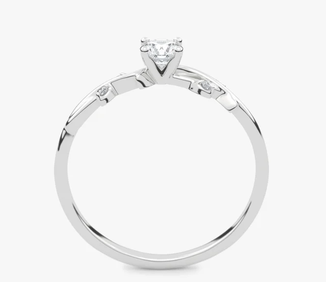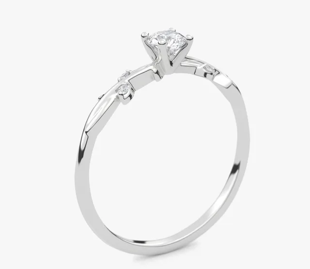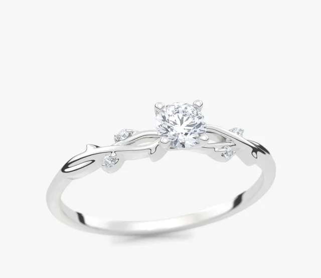 Pierścionek zaręczynowy Rosie to wyjątkowy symbol miłości, inspirowany subtelnym pięknem róży. Jego niezwykły design łączy klasyczną elegancję z florystycznym motywem, tworząc biżuterię, która zachwyca detalami i finezyjnym wykonaniem. Lśniący kamień centralny, osadzony w sercu pierścionka, symbolizuje wieczną miłość i czystość uczuć, a jego szlif podkreśla niezwykły blask i wyjątkowość każdej chwili. Pierścionek Rosie to idealny wybór dla osób ceniących subtelność, ponadczasową elegancję i symbolikę prawdziwej miłości.