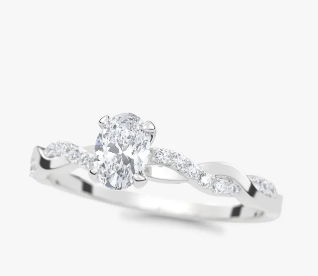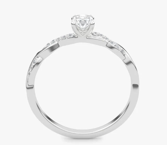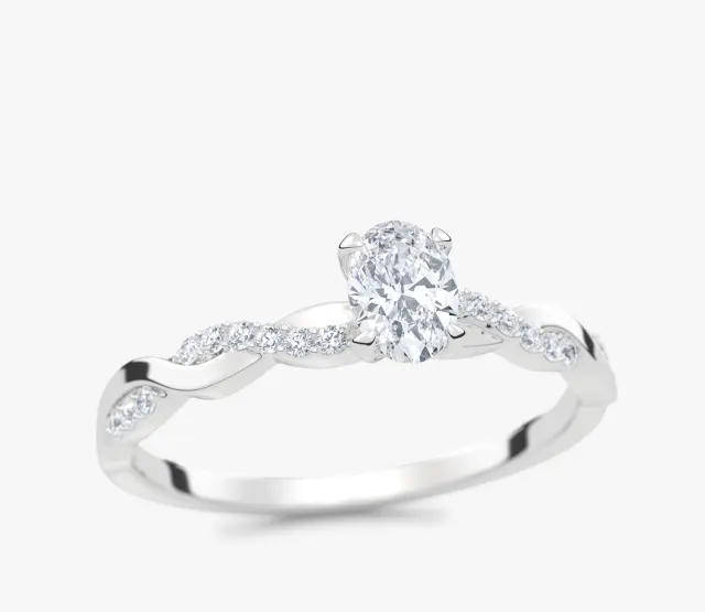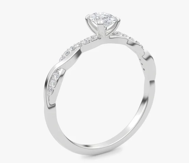 Pierścionek zaręczynowy Wila to kwintesencja subtelnej elegancji i naturalnej harmonii. Zachwyca niepowtarzalnym splotem obrączki, który symbolizuje splatanie się dwóch dróg w jedną wspólną historię. Centralny owalny diament lśni pełnią blasku, podkreślając wyjątkowość chwili, a towarzyszące mu drobne kamienie osadzone w oplatającej obrączce dodają całości lekkości i romantycznego charakteru.