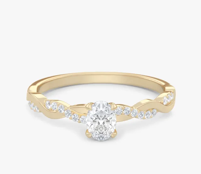 Pierścionek zaręczynowy Wila to kwintesencja subtelnej elegancji i naturalnej harmonii. Zachwyca niepowtarzalnym splotem obrączki, który symbolizuje splatanie się dwóch dróg w jedną wspólną historię. Centralny owalny diament lśni pełnią blasku, podkreślając wyjątkowość chwili, a towarzyszące mu drobne kamienie osadzone w oplatającej obrączce dodają całości lekkości i romantycznego charakteru.