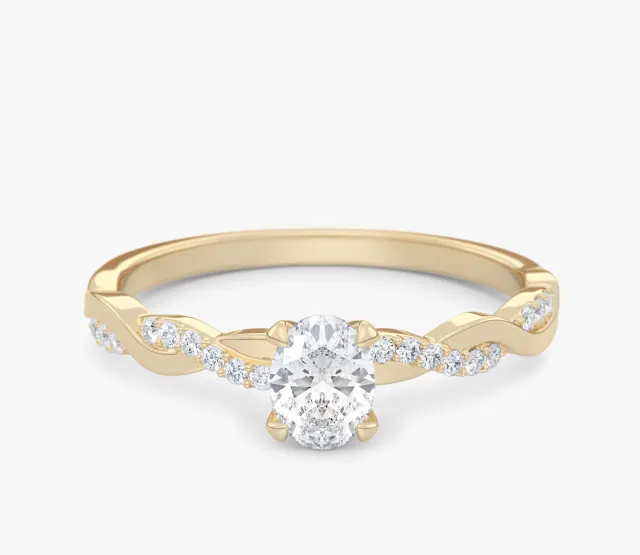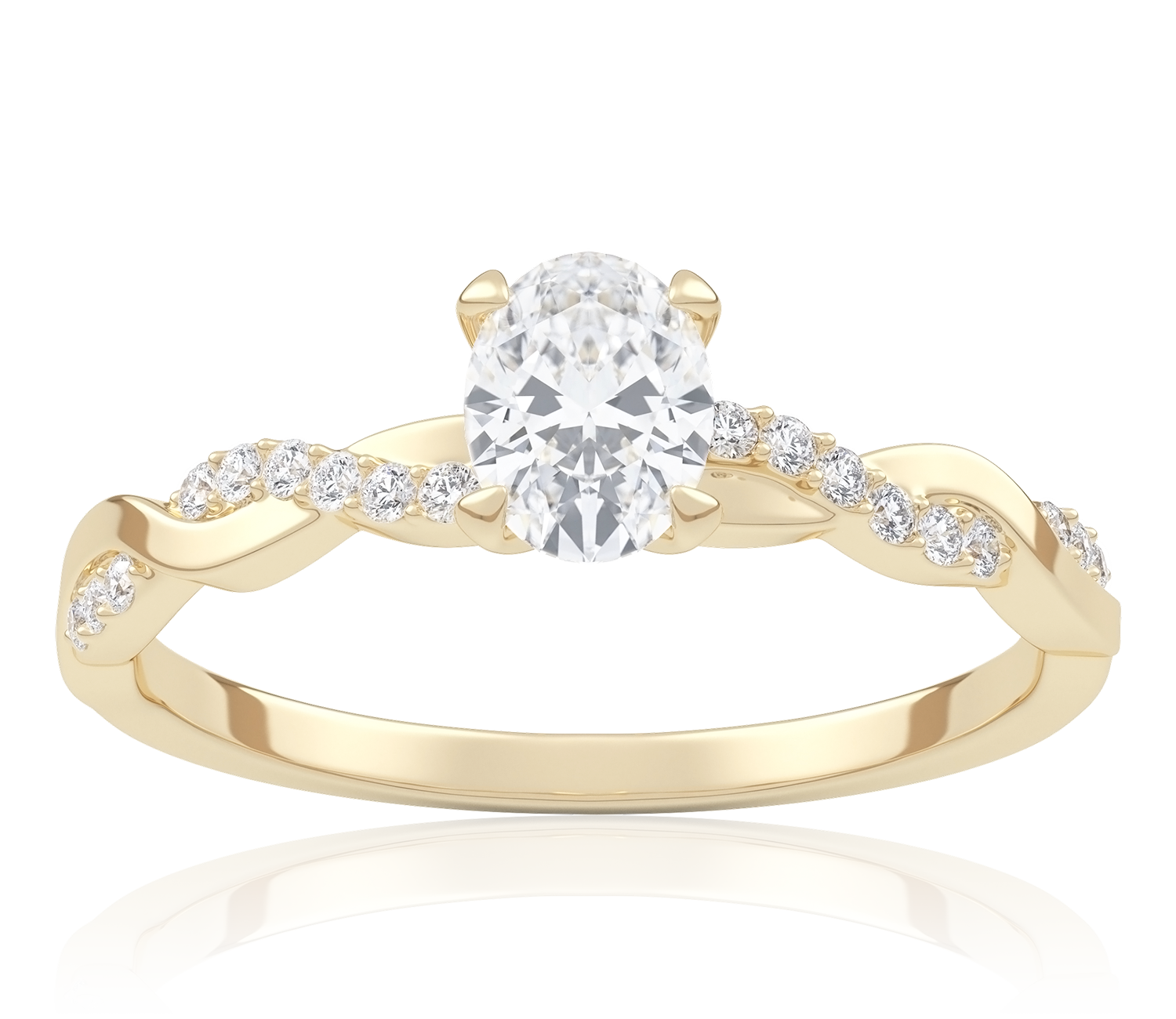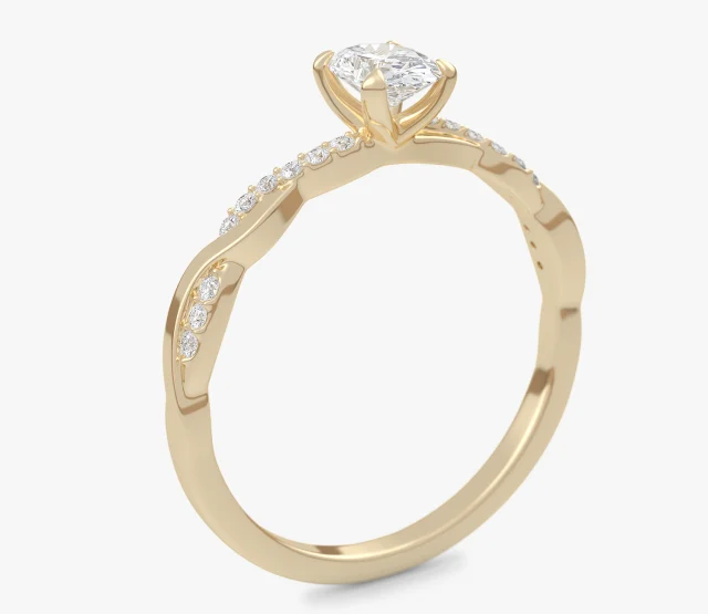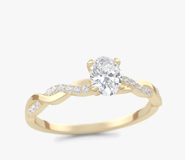Pierścionek zaręczynowy Wila to kwintesencja subtelnej elegancji i naturalnej harmonii. Zachwyca niepowtarzalnym splotem obrączki, który symbolizuje splatanie się dwóch dróg w jedną wspólną historię. Centralny owalny diament lśni pełnią blasku, podkreślając wyjątkowość chwili, a towarzyszące mu drobne kamienie osadzone w oplatającej obrączce dodają całości lekkości i romantycznego charakteru.