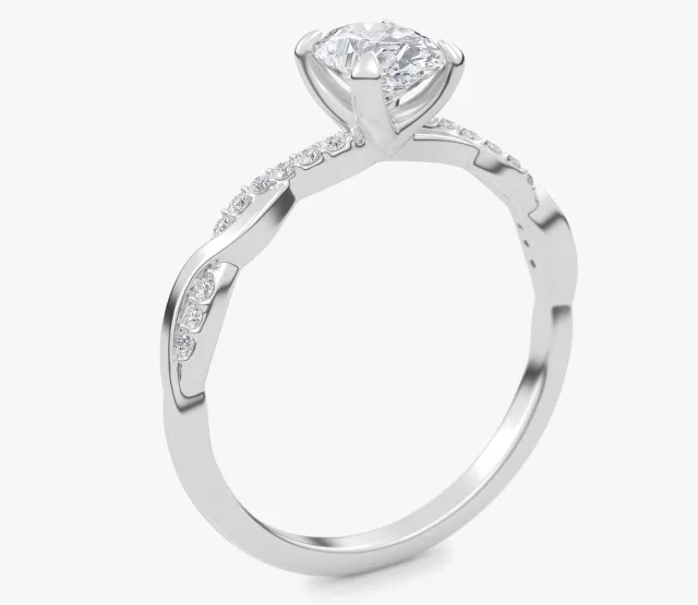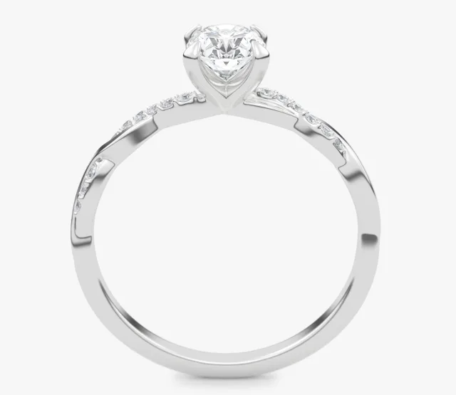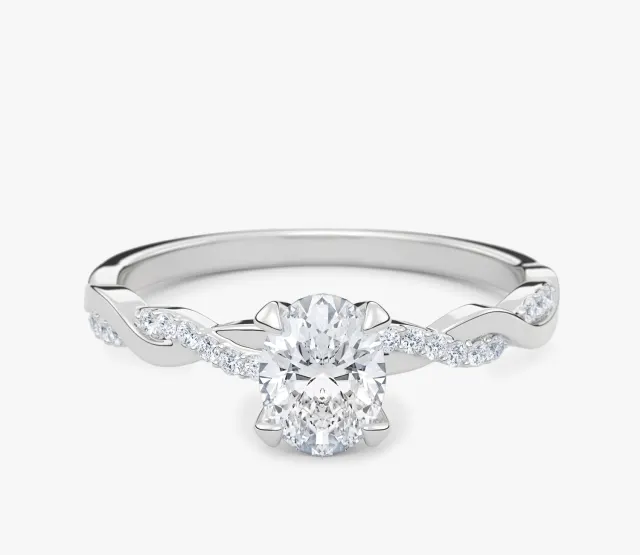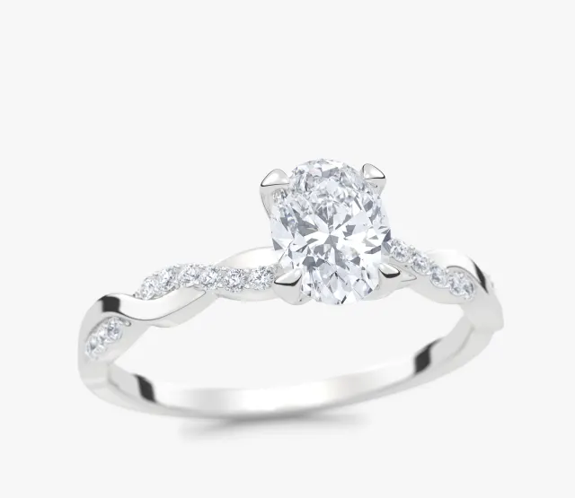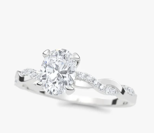 Pierścionek zaręczynowy Wila to kwintesencja subtelnej elegancji i naturalnej harmonii. Zachwyca niepowtarzalnym splotem obrączki, który symbolizuje splatanie się dwóch dróg w jedną wspólną historię. Centralny owalny diament lśni pełnią blasku, podkreślając wyjątkowość chwili, a towarzyszące mu drobne kamienie osadzone w oplatającej obrączce dodają całości lekkości i romantycznego charakteru.