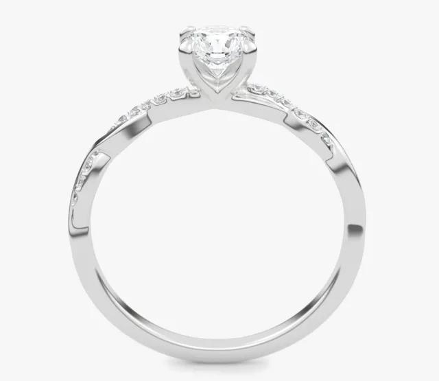 Pierścionek zaręczynowy Willow to kwintesencja subtelnej elegancji i naturalnej harmonii. Zachwyca niepowtarzalnym splotem obrączki, który symbolizuje splatanie się dwóch dróg w jedną wspólną historię. Centralny kamień lśni pełnią blasku, podkreślając wyjątkowość chwili, a towarzyszące mu drobne kamienie osadzone w oplatającej obrączce dodają całości lekkości i romantycznego charakteru.