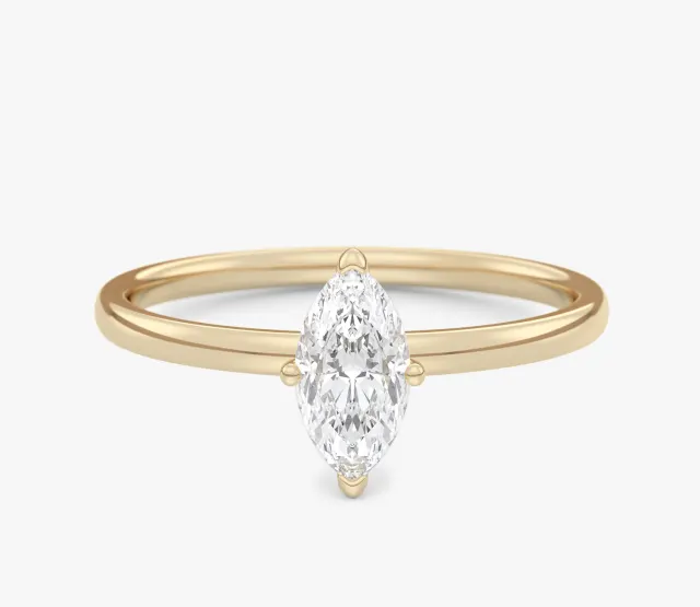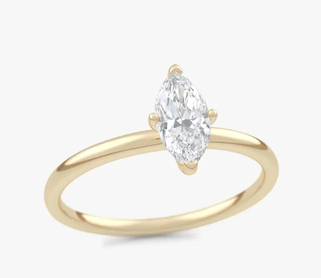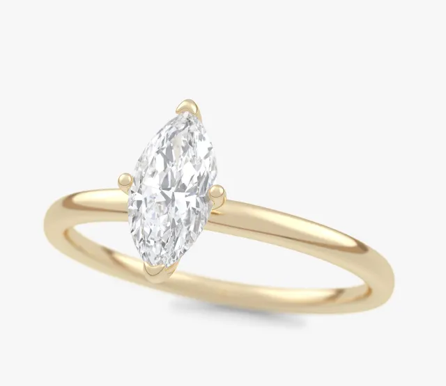 Pierścionek zaręczynowy Sunna z diamentem w kształcie markizy to idealna biżuteria dla kobiety, która ceni sobie klasyczny urok w połączeniu z finezją i subtelnym, romantycznym akcentem. Centralny diament o szlifie markizy przyciąga wzrok wyjątkowym blaskiem, a jego wydłużony kształt pięknie wysmukla dłoń, nadając jej lekkości i elegancji.