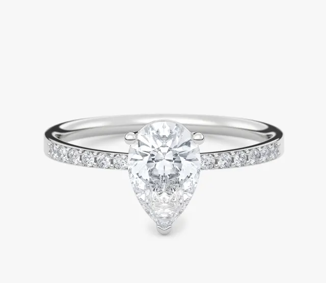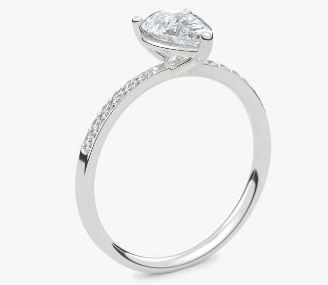 Pierścionek zaręczynowy Muse to symbol elegancji i ponadczasowej miłości. Jego centralny diament, kształtem przypominający łezkę, jest oszałamiający w swojej piękności. Jest to diament doskonale oszlifowany, który emanuje blaskiem i życiem, przyciągając uwagę i oczarowując swym urokiem.