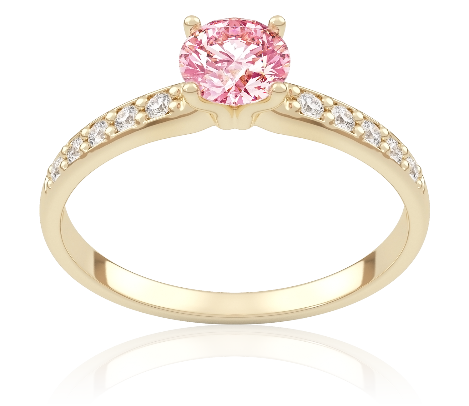 Eternal 0,63 ct Pierścionek zaręczynowy z żółtego złota z różowym diamentem laboratoryjnym i diamentami laboratoryjnymi