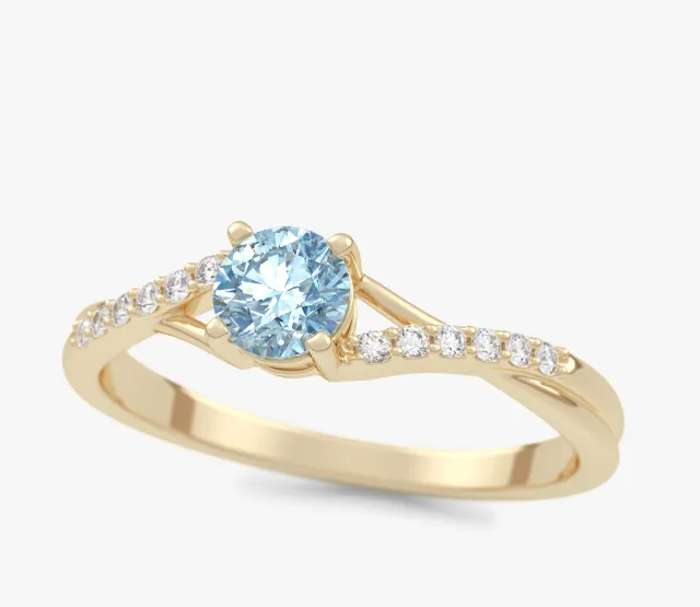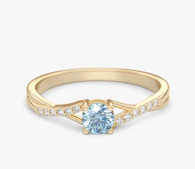 Ivy 0,35 ct Pierścionek zaręczynowy z żółtego złota z niebieskim diamentem laboratoryjnym i diamentami laboratoryjnymi