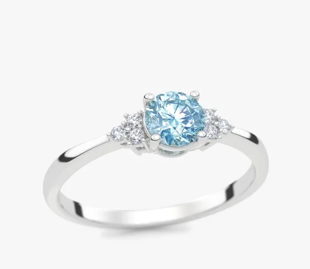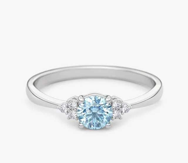 Pierścionek zaręczynowy z białego złota z niebieskim diamentem laboratoryjnym i diamentami laboratoryjnymi Ivy 0,35 ct