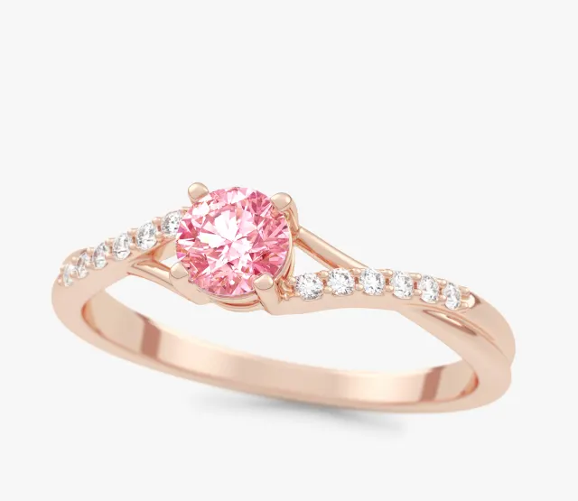 Ivy 0,35 ct Pierścionek zaręczynowy z różowego złota z różowym diamentem laboratoryjnym i diamentami laboratoryjnymi