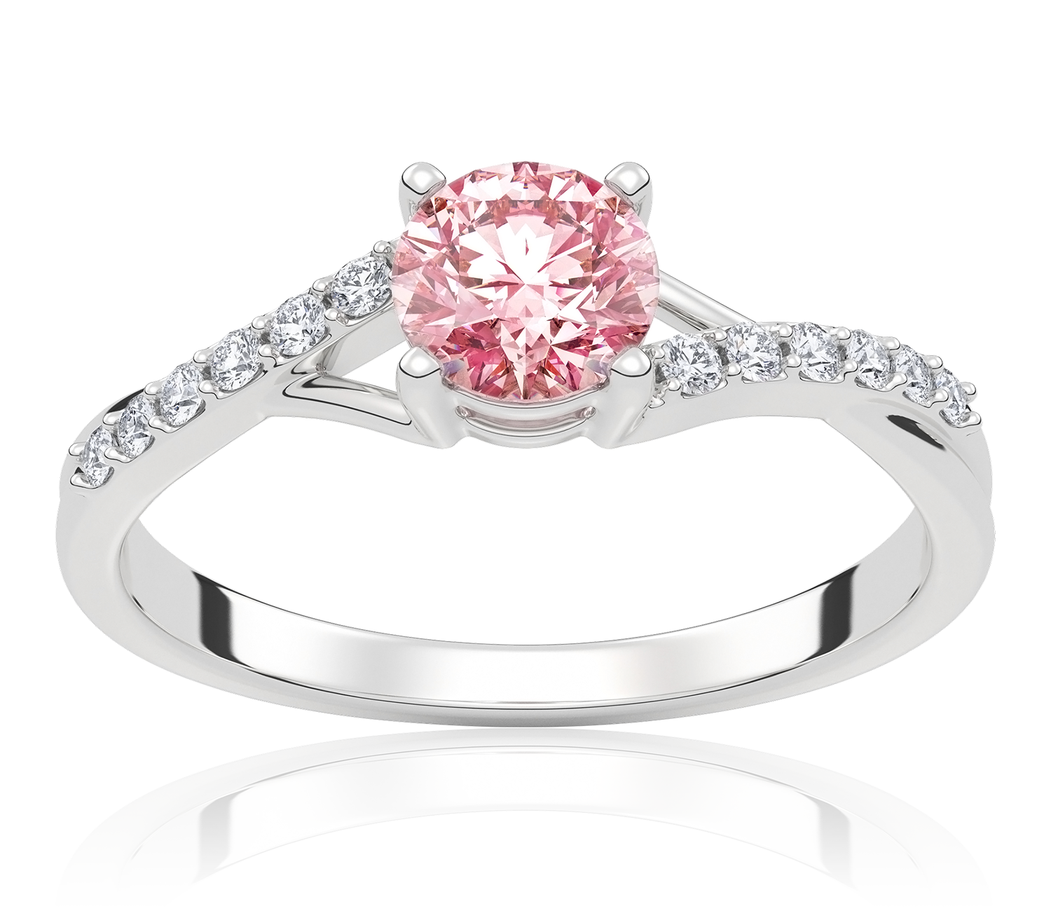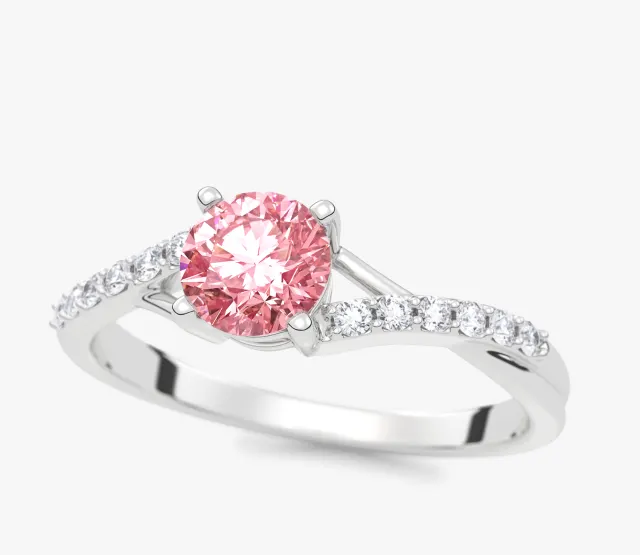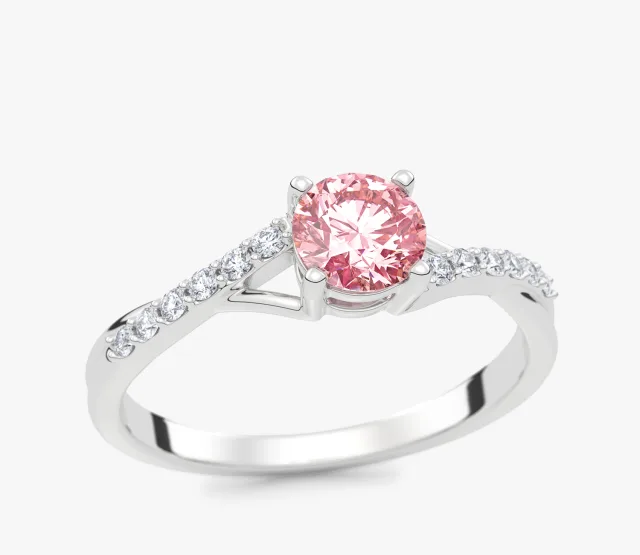 Ivy 0,60 ct Pierścionek zaręczynowy z białego złota z różowym diamentem laboratoryjnym i diamentami laboratoryjnymi