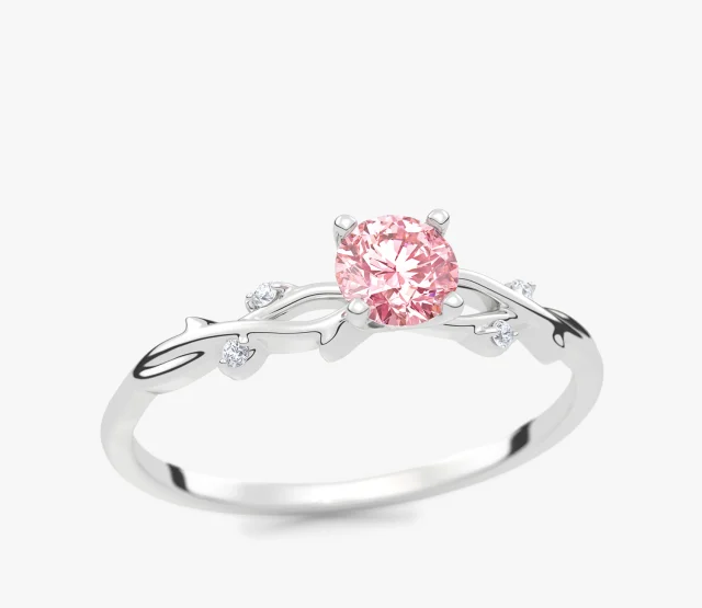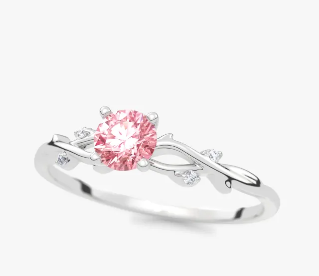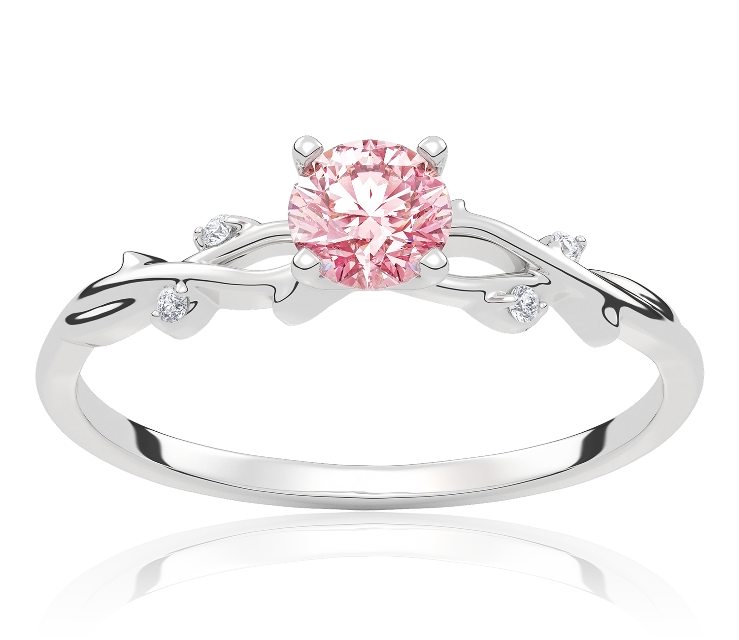 Rosie 0,31 ct Pierścionek zaręczynowy z białego złota z różowym diamentem laboratoryjnym i diamentami laboratoryjnymi