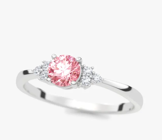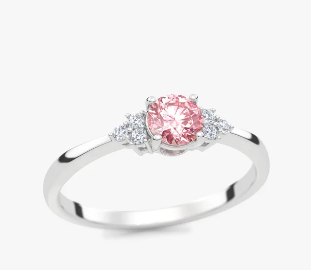 Dreamy 0,35 ct Pierścionek zaręczynowy z białego złota z różowym diamentem laboratoryjnym i diamentami laboratoryjnymi